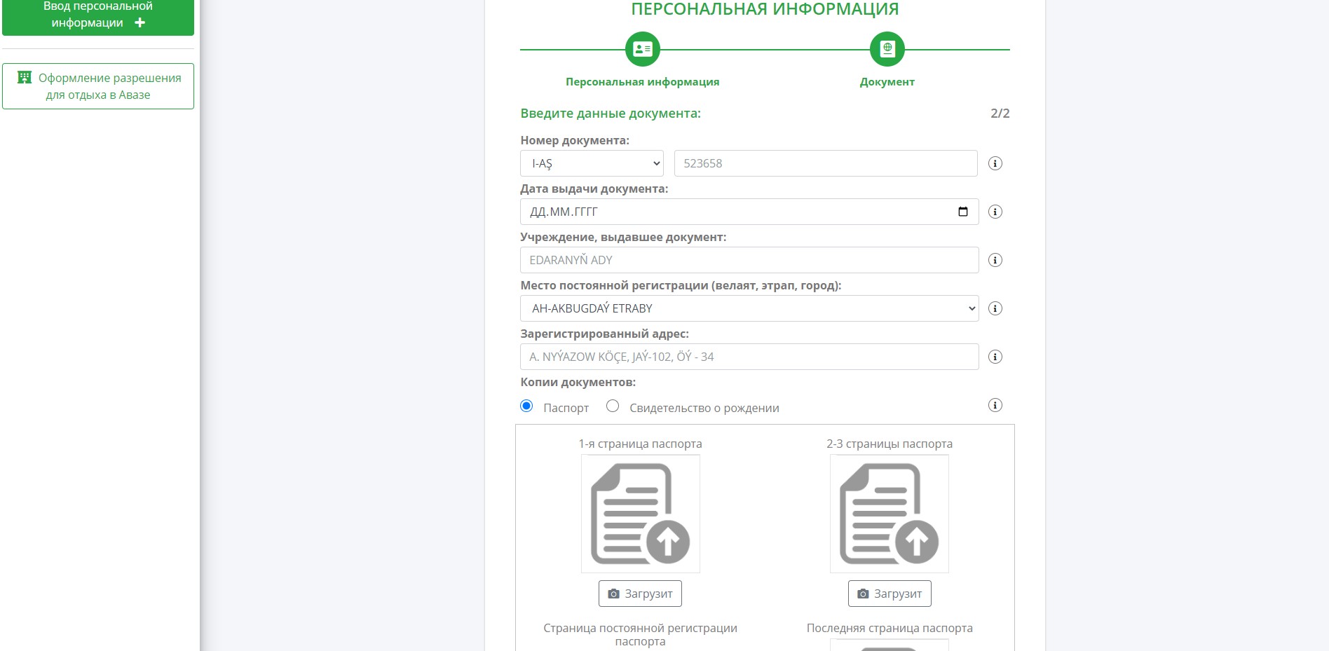Then the user must enter the series and number of the civil passport, the date of issue and the name of the authority that issued the identity card. In the next section, you must upload passport, hotel reservation and a certificate of three vaccinations against COVID-19, which is necessary for obtaining a permit.