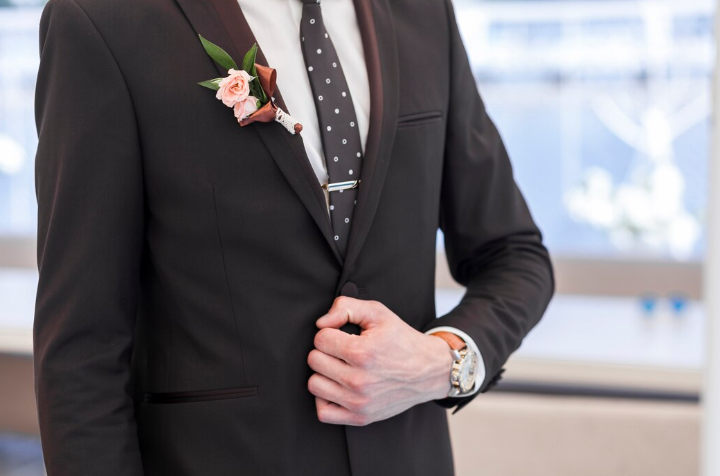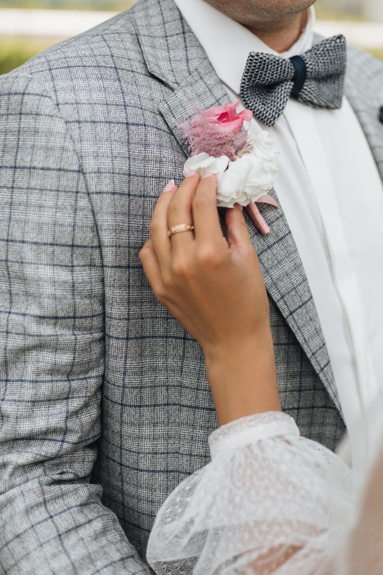 In the same style with the bride's bouquet, it is necessary to arrange a boutonniere for the groom.
