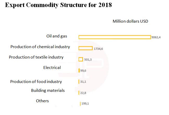 Turkmenistan's foreign trade in 2018 amounted to 16,973.8 million US dollars. The reforms carried out in Turkmenistan’s foreign trade activities had a positive effect on the trade balance, totaling $ 6,328.0 million. A trade surplus means that the country sold more than it bought in 2018.