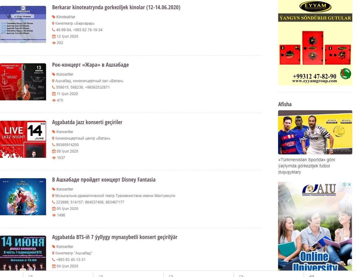 15. do you Like to go out with your family or friends on weekends? Where to go? Don't know where what's going on? In this case, the "Poster" section of the "Türkmenportal" website will help you. Here you can get information about events taking place in our capital and other cities.
