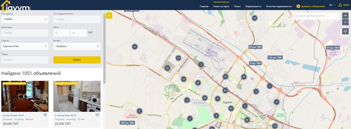 Jayym.com – это новый и удобный сервис поиска недвижимости, который поможет купить, продать, снять и сдать в аренду недвижимость по всему Туркменистану, не выходя из дома. В отличие от устаревших сайтов и приложений, Jayym.com отвечает всем требованиям нашего времени, обладает модернизированной системой поиска и размещения объявлений. Множество параметров сортировки помогут подобрать недвижимость на любой вкус и бюджет. А что для этого надо мы сейчас подробно расскажем.
