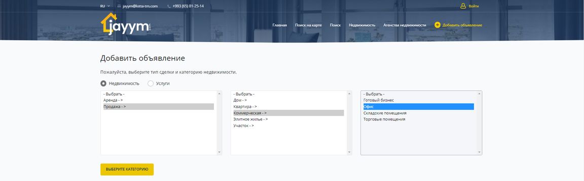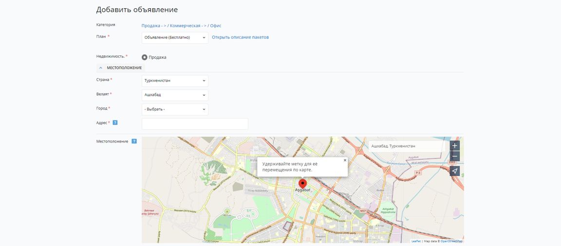 Затем необходимо указать местоположение объекта (адрес и метку на карте) и заполнить все обязательные поля, обозначенные красной звездочкой*. Осталось только загрузить фотографии (более 5 шт.), описать объект с указанием его преимуществ и указать его цену. Зарегистрируйтесь или авторизуйтесь. Дальнейшее управление объявлениями осуществляется через личный кабинет. Кроме того, Jayym.com предоставляет возможность рассылки в популярных социальных сетях и мессенджерах, чтобы помочь быстро и легко найти покупателя под имеющийся объект недвижимости.