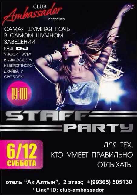 6 Декабря в 19:00 клуб "Ambassador" удивит вас вечеринкой "Staff Party"!