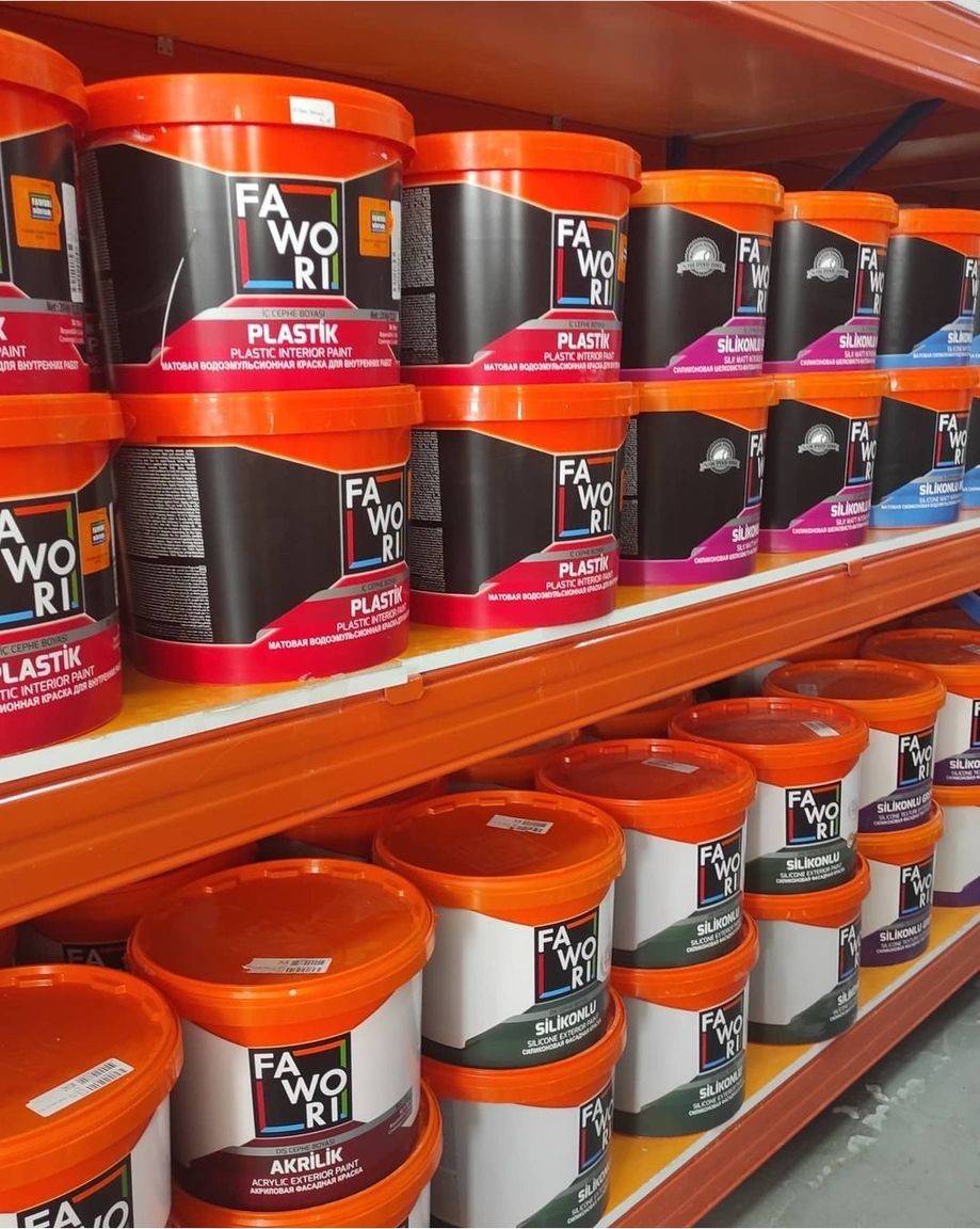 “Ak gaýa” dükanlarynda diwar boýaglarynyň (suw esasly, silikon, içki we daşarky diwarlar üçin, ýokary çyglylykly otaglar üçin), şeýle hem dürli diwar oboýlarynyň we diwar ýelimleriniň görnüşleri alyjylara hödürlenilýär. Tejribeli satyjylar her bir alyjy üçin haýsy diwar oboýynyň ýa-da boýagyň has gowy boljakdygyny maslahat berýärler.