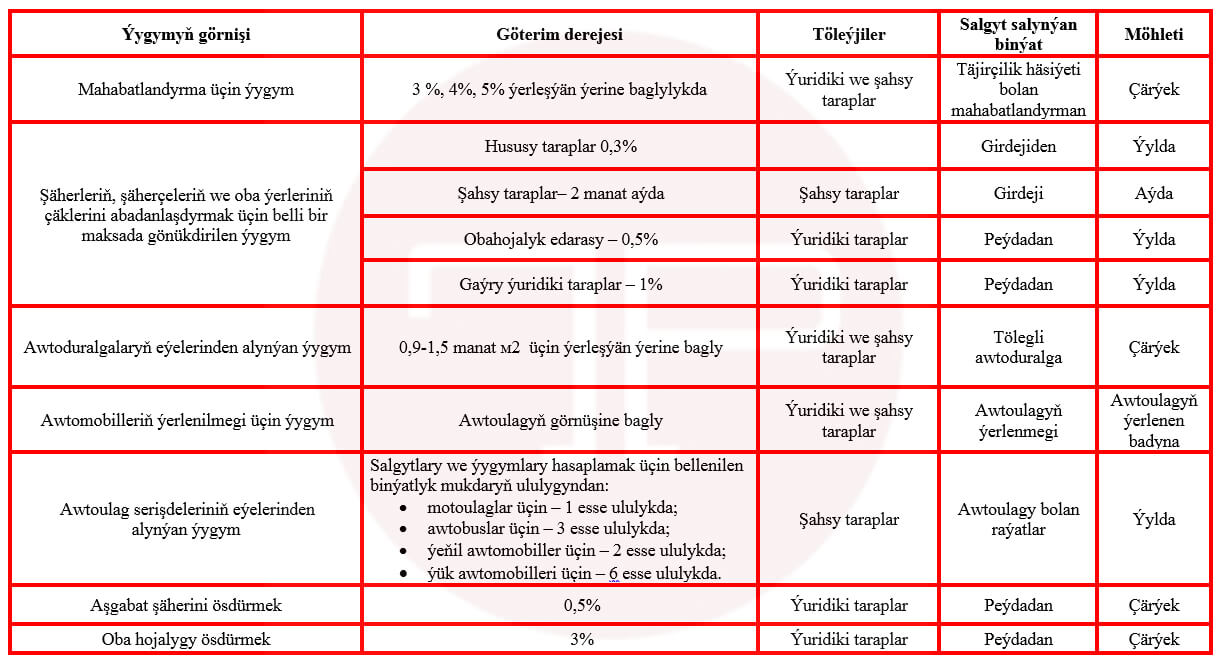 Salgyt tölegleriniň girdeji we çykdajy edilişiniň çyzgysy;