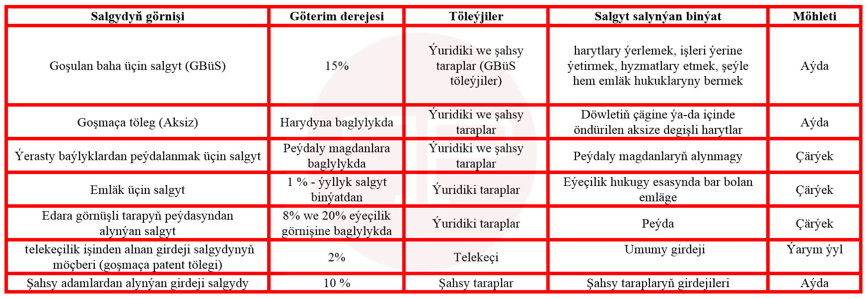 Salgyt kanunçylygynda göz öňünde tutulan salgyt töleýjiniň borçlary;
