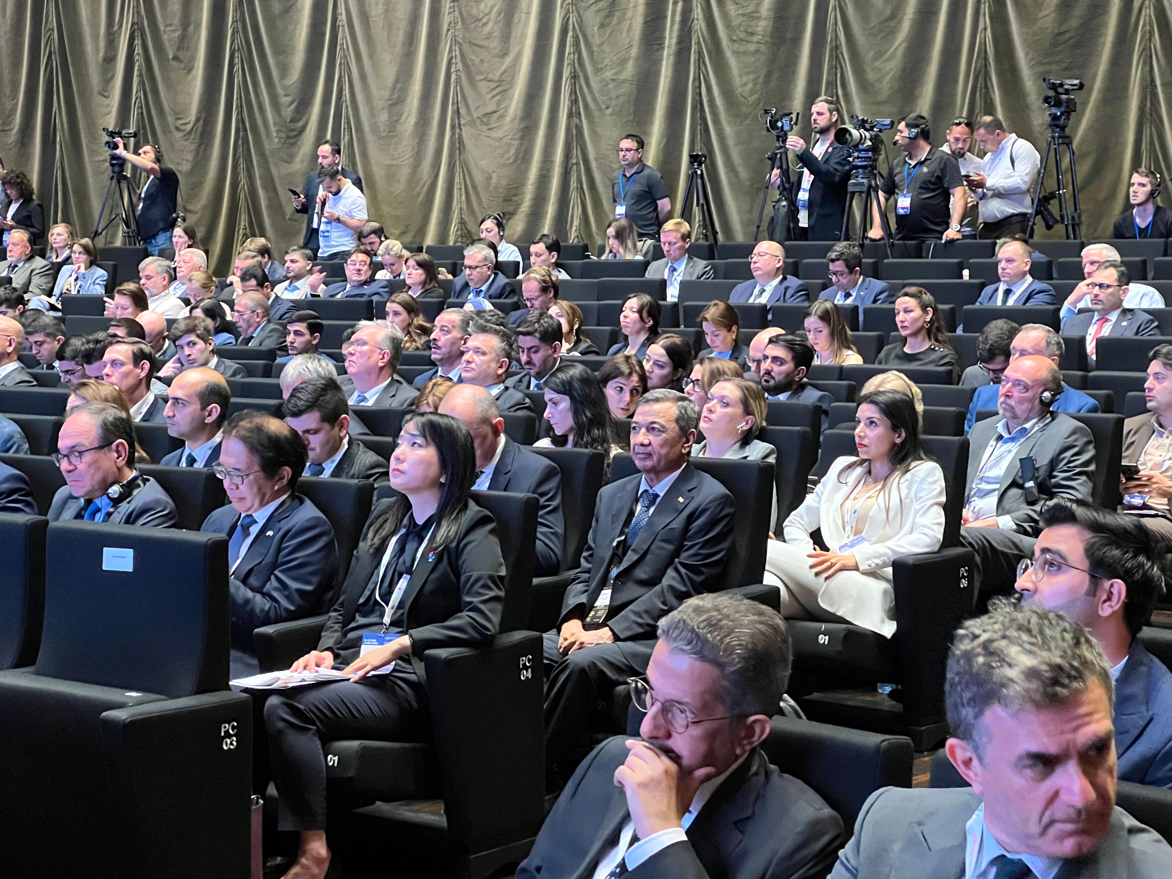 Forumda enerji güvenliği, yenilenebilir enerji kaynaklarının geliştirilmesi ve yeşil enerjinin uygulanması ele alındı. Hazar bölgesinde açık deniz rüzgar enerjisinin potansiyeli, sınır ötesi enerji projelerinde iş birliği ve enerji sektörünün dijital dönüşümü de tartışıldı.